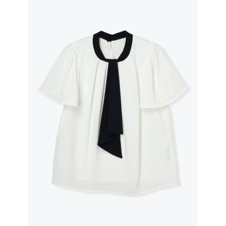 [型番:26580040189]配色切り替えのボウタイが目を惹く上品なブラウス。動くたびにひらりと揺れる袖フレアが女性らしさを引き立てます。リラックス感のある程よくゆとりのあるシルエットは着心地も良く、一枚でサマ見えできる優秀アイテムです。モデル(紺着用)身長:160cmMサイズ着用