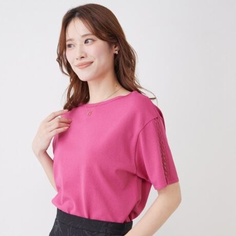 編地をクロスさせた特徴的な編み柄は、初夏の気分を感じられつつ、チラリ覗く透かし穴が女性らしいニュアンスです。