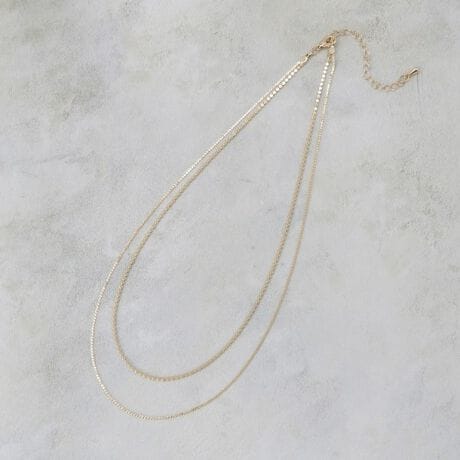 洗練された重なりが魅力、2連デザインチェーンショートネックレス