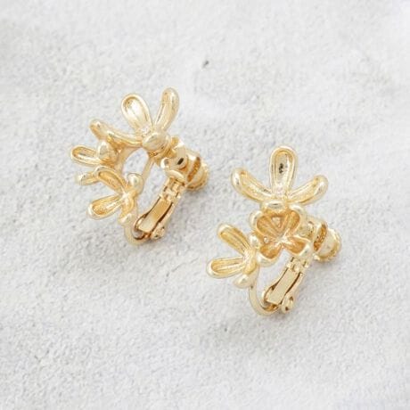 大小さまざまなフラワーモチーフを組み合わせた、立体感のあるデザインが耳元を華やかに彩るイヤリング。