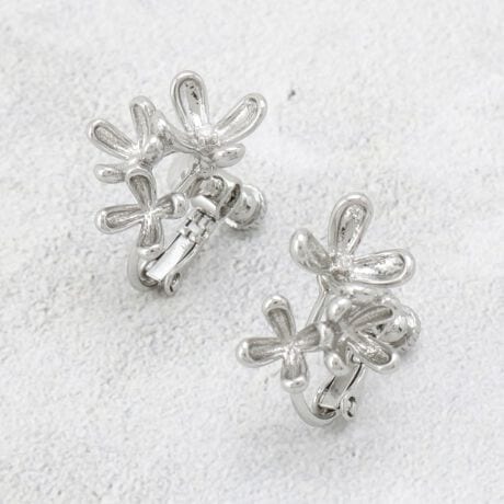 大小さまざまなフラワーモチーフを組み合わせた、立体感のあるデザインが耳元を華やかに彩るイヤリング。