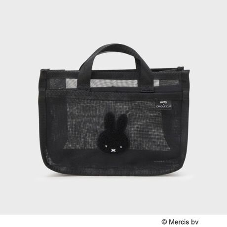 ふわふわなさがら刺繍で表現したミッフィーのお顔がかわいいバッグインバッグ。