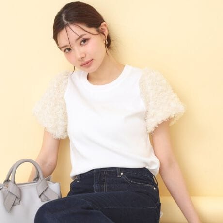 ・ふんわりとしたボリュームスリーブが、気になる二の腕を自然にカバー。