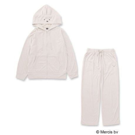 ミッフィーのお顔の刺繍を施したジップアップフーディとパンツのセットアップ。