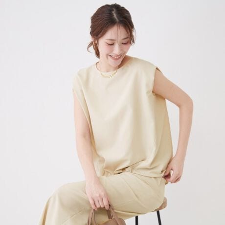 肌離れの良いドライタッチな風合いでシワになりにくく、お手入れしやすい素材です。