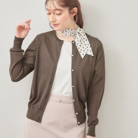 ・着まわしやすいベーシックなコンパクトクルーネックカーディガン。