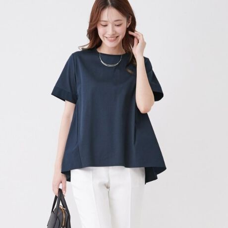 【手洗い可/日本製】バックペプラムデザイン プルオーバー