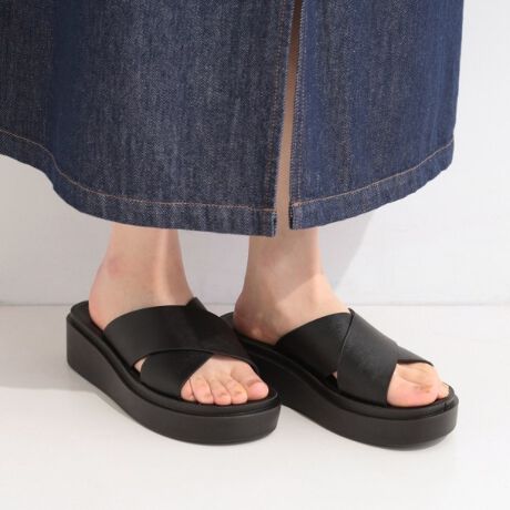 太めのクロスストラップが足元をすっきり見せるベーシックな厚底サンダル。