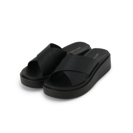 太めのクロスストラップが足元をすっきり見せるベーシックな厚底サンダル。