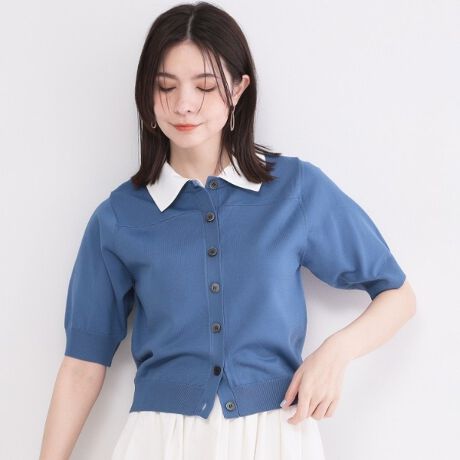 ・シャツ衿をドッキングさせた1枚でコーディネイトを引き立てるデザインポロニット