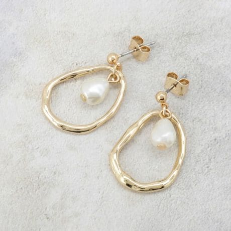 揺れる美しさと上品さを纏う、メタル×フェイクパールスイングデザインピアス