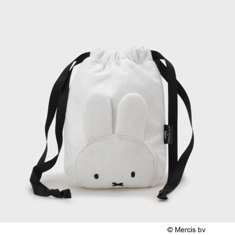ミッフィーの可愛らしいお耳を立体的に施した巾着ポーチ。