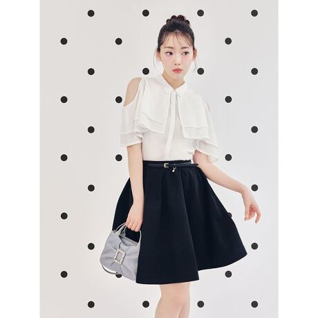細幅のテープレースをあしらい女性らしい可憐なデザインに仕上げました。肩を程よく開けることで肌見せを上品に抑え、夏らしい涼やかな着心地が叶います。