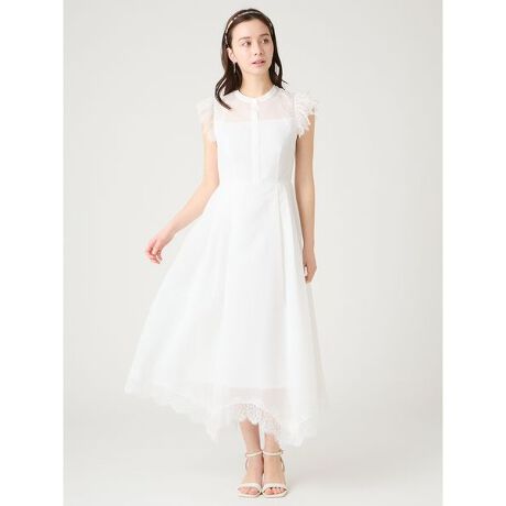 シフォンオーガンジーにストライプ柄がさりげなく入った素材とレーストリムを掛け合わせたワンピース。