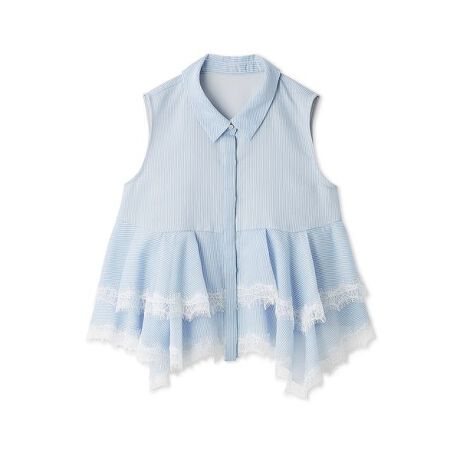 涼しげなストライプ地に繊細なリバーレースでトリミングしたブラウス。