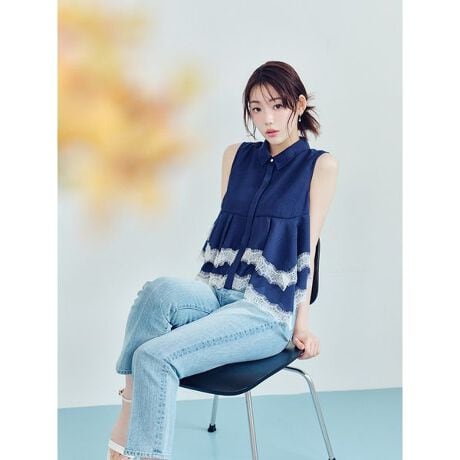 レースヘムペプラムブラウス