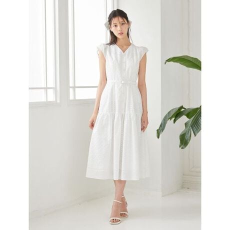 花模様を規則的に並べた総柄のエンプロイダリーワンピース。