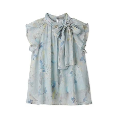 首回りのビッグボウタイはあえてサイドの位置に結べる設定にし、大人上品な印象に。ペタルスリーブデザインで、涼し気ながら肩回りをカバーします。細身のパンツやショートパンツ合わせのコーディネートがおすすめです。