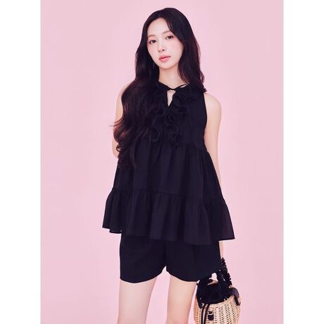 一枚で映えるティアードシルエットに仕上げ、ボトムにすっきりとしたパンツやショートパンツの合わせがオススメです。