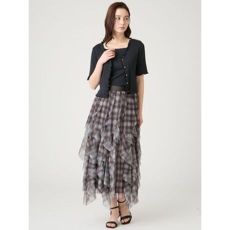 インナーのノースリトップスは袖口にはあえてフリルを付けずにすっきりと仕上げています。インナーだけをジャケットやシャツの中に合わせるのもおすすめです。