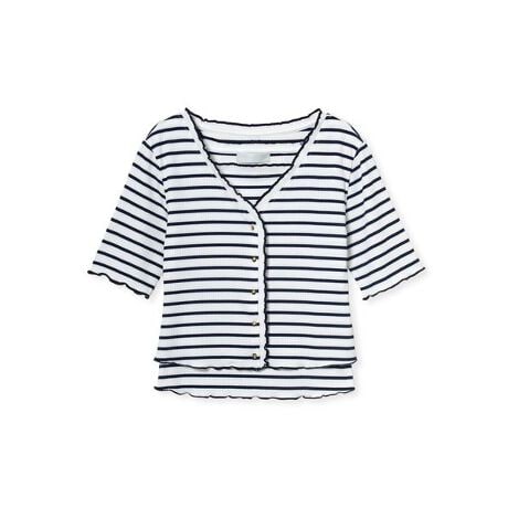 インナーのノースリトップスは袖口にはあえてフリルを付けずにすっきりと仕上げています。インナーだけをジャケットやシャツの中に合わせるのもおすすめです。