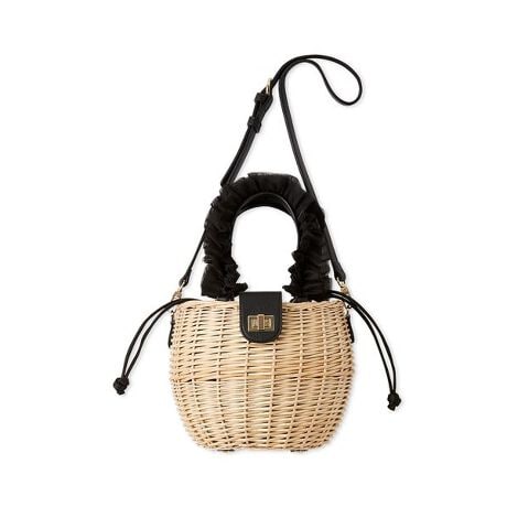 軽さと丈夫さが魅力の柳(ウィロー)を編み上げてカゴバッグにし、キラキラと光沢感のあるチュールを重ねてギャザーをよせたフリルをハンドルに施しました。