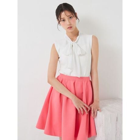 甘くなりすぎないフレアシルエットに設計し、大人上品な丈感にこだわりました。ウエストにはゴムが通っており着心地も抜群◎