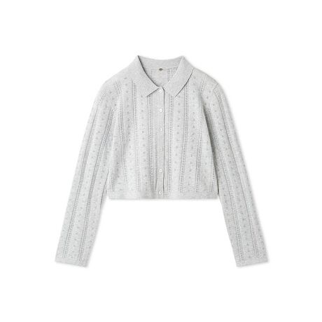 細かな透け柄編みが特徴の、涼しげな印象のカーディガン。