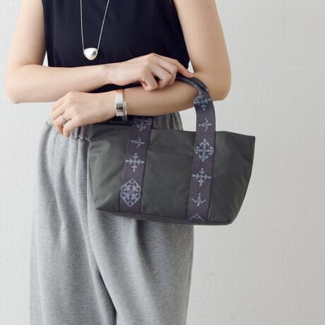 ハンドルにブランド独自のモノグラムテープを配することで、バッグ自体の軽さを維持しながら、日常の装いにアクセントを加えるデザインに仕上げました。