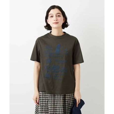 前身頃全体に施したフロッキープリントが、カジュアルなカットソーにさりげく上品さをプラスしています。立体的なロゴやイラストはプリントながらも存在感があり、着こなしのアクセントとして映えます。首元から少し離れた衿デザインは、顔まわりをすっきりと見せる効果があり、デイリーのコーディネートをきれいに整えてくれます。