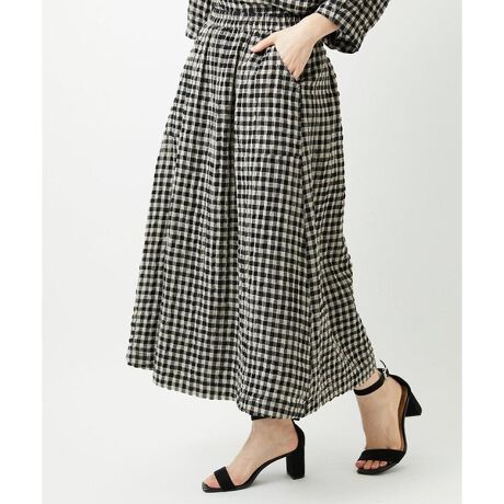 大人ナチュラル綿麻ギンガムチェックスカート
