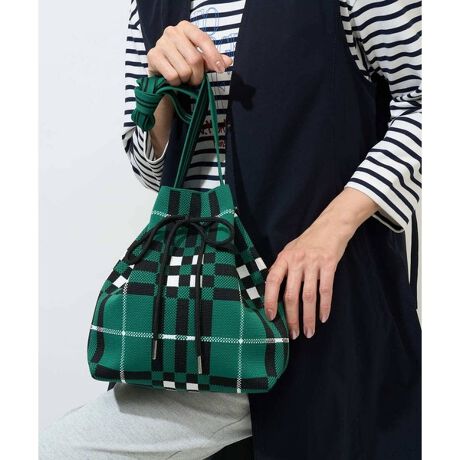 [型番:PF5GD28090][ジョルジュ・レッシュ 小さいサイズ]■デザイントレンドのチェック柄のミニ巾着ショルダーバッグです。ニット素材の巾着ショルダーバッグは存在感のあるチェック柄でPOPな印象です。ショルダーにもラインが入っており、斜めがけできる長さも嬉しいポイントです。チェック柄のバッグはシンプルなコーデのアクセントにおすすめです。■展開サイズ:フリー(F)