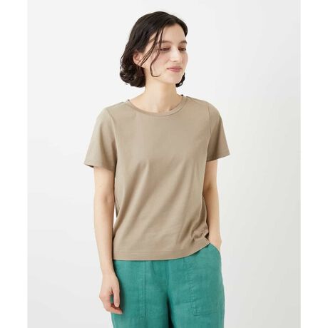 コンパクトなシルエットで、すっきりとした印象に仕上がるTシャツ。短すぎない袖丈で安心して着用いただけます。程よい丈感でバランスが取りやすく、ワイドパンツやボリュームのあるスカートとも好相性。着回し力が高く、色違いで揃えたくなる万能アイテムです。