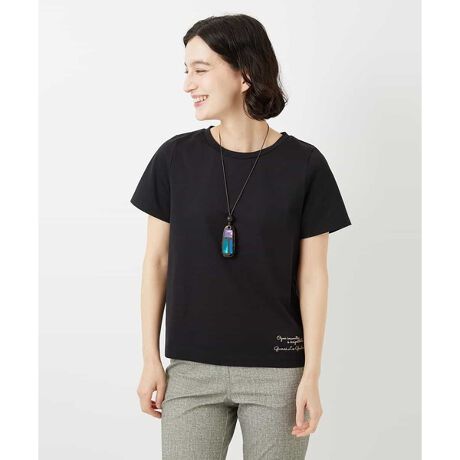 上品見えする上質な素材を使用したシンプルTシャツ。裾部分にメッセージとブランドロゴに刺しゅうを施した 大きすぎずすっきりと着れるクルーネックデザイン。夏には必須アイテムのTシャツ。一枚着でも、ジャケットやシャツインナーとしてももたつかずきれいに着こなせるおすすめアイテムです。刺しゅうデザインには「Ogni incontro e irripetibile 」直訳で「すべての出会いは唯一無二である」一度きりの出会い、一期一会というニュアンスです。大切な方との出会い、お気に入りの一着を見つけた瞬間の思いをメッセージにしました。同素材のタンクトップ【NHKGF95070】もございます。