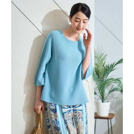 ハイゲージのホールガーメントのお仕立てで、体の締め付け感がない、ストレスフリーの着心地にこだわったニットプルオーバー。