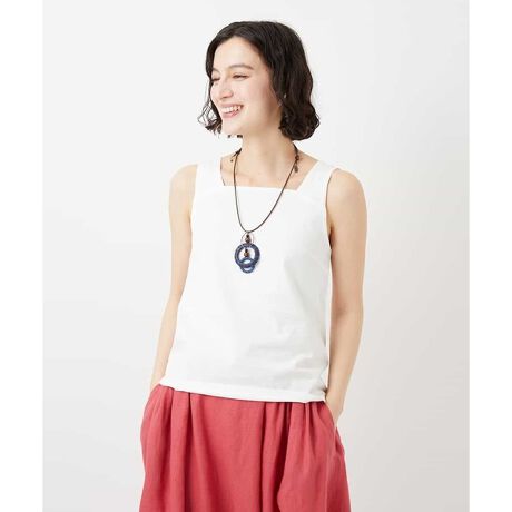 シアー素材のトップスが上品に決まるタンクトップ。上質なコットンを使用した天竺で、肩から胸元に安心・安定感スクエアネックライン。お下着などの肩ひものしっかり隠れる少し広めのストラップです。インナー用として様々なコーディネートに重宝する一着です。なめらかな質と光沢感が上品さをもたらし、日々の大人のきれいめカジュアルスタイルが決まるアイテムです。同素材のTシャツ【NHKGF94100】もございます。