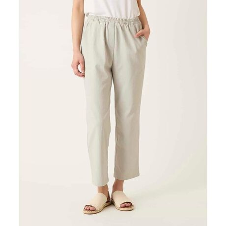 多機能素材を使用したドライタッチで軽やかな穿き心地。程よいゆとりのあるテーパードシルエットがすっきりと綺麗なレッグラインを演出します。きちんと感がありつつ、ウエストゴムのリラクシーな仕様も魅力的なポイント。ナチュラルな風合ながら品もある、大人スタイルに欠かせないマストアイテムです。