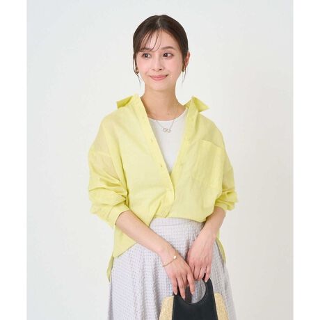 ゆったりとしたサイズ間で暑い季節にも涼しく着こなせるリネン混シャツブラウス。着丈に前後差を付けているので、ヒップをカバーしながらスタイリッシュに着こなせます。