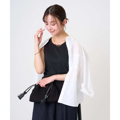 ゆったりとしたサイズ間で暑い季節にも涼しく着こなせるリネン混シャツブラウス。着丈に前後差を付けているので、ヒップをカバーしながらスタイリッシュに着こなせます。