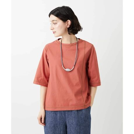 全体のステッチに施したさりげない微配色がアクセントになった一枚。1枚で着ても、ジレや羽織とのレイヤードでも活躍するので、シーズンを問わずコーディネートできます。製品染めならではのまろやかな発色で、色違いで揃えたくなる便利なアイテムです。