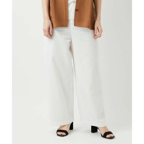 ライトブルーはインディゴ染めのものをブリーチ加工、ホワイトは白生地のものを薄く製品染めしています。シルエットはややゆとりのあるワイドシルエットで、リラックスして着用いただけます。ウエストには前脇からゴムを入れ、ストレスフリーな穿き心地です。どんなトップスにもコーディネートしやすく、大人カジュアルスタイルを作ることが出来るパンツです。