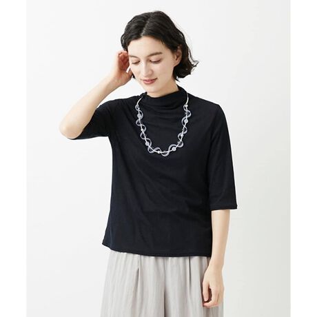 通気性の良い素材なので汗ばむ季節でもストレスフリーな着心地が叶います。低めのボトルネックはタートルネックほど首を覆わないので、楽ちんかつ、ほどよい抜け感を演出できます。気になる肘をカバーしてくれる袖丈も嬉しいポイントです。ストレッチ抜群の生地なので、着脱しやすく、ストレスフリーな着用感も魅力的です。