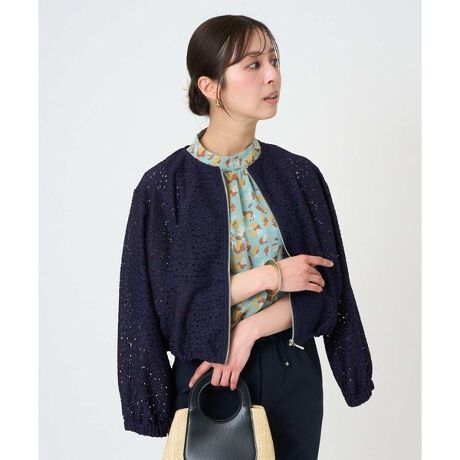 レース素材のジップアップブルゾンはシンプルなコーディネートのポイントにも着映えます。甘すぎないラッセルレースなので、コーディネートを選びにくいのも嬉しい。