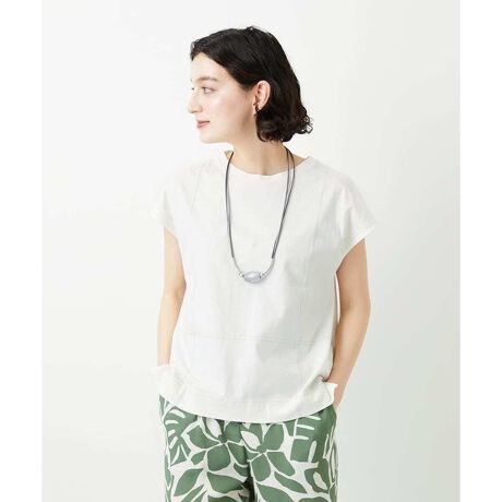 インナーとしても、1枚着としても長いシーズン活躍するスリーブレスカットソーです。前後のステッチに施した微配色がさりげないアクセントになり、肩まわりはすっきり見えるラインに仕上げました。