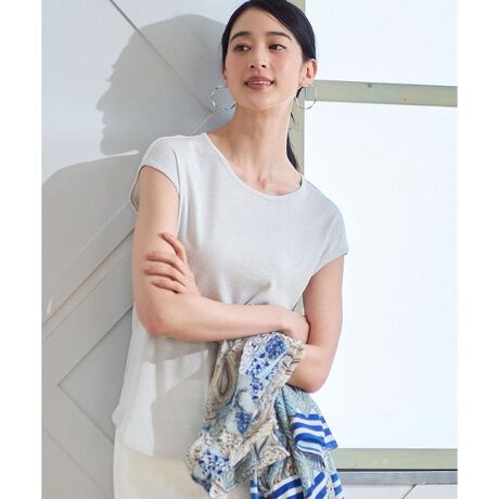肌触りの良い素材がやさしく肩周りを包み込む絶妙なフレンチスリーブで、一枚着としてもインナーのタンクトップ替わりとしても使えます。