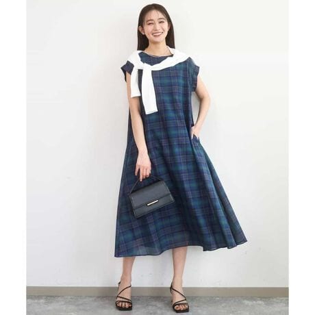 裾に向かってきれいに広がるフレアシルエットのワンピース。チェック柄がコーディネートに映える一枚です。取り外し可能な共地ベルト付きで、シルエット変化も楽しめます。