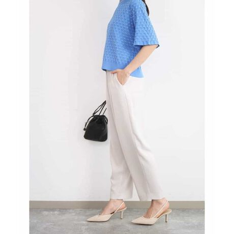 快適な着心地にこだわりながらも、きれい見えなシルエットはONシーンにはもちろん、カジュアル気分な日にも最適。幅広く着回しを楽しめます。同素材のブラウスもご用意しているのでセットアップで着こなせば、こなれたスタイルが完成します。