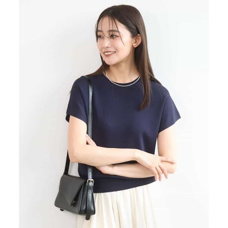 二の腕をすっきりと見せてくれるフレンチスリーブで一枚着も安心なニット。体のラインを拾いにくいコンパクトなサイズ感は、きれいめTシャツ感覚で幅広くコーディネートを楽しめます。