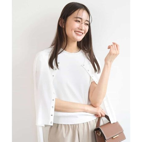 ワンピースやブラウスの上にさっと羽織るのはもちろん、釦を留めてプルオーバーとしての着用もおすすめ。クロップド丈がどんなボトムとの相性良く着こなせます。第一釦を閉じ、釦部分をアクセントにカーディガンを肩掛けしたスタイルは今季注目の着こなし。同素材のプルオーバーとアンサンブルとしても着こなせます。