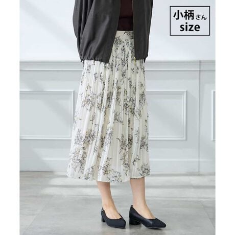 透け感のある素材で軽やかな印象の、花柄ランダムプリーツスカート。